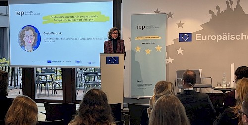 These issues were discussed by State Secretary Dr Thomas Steffen during the IEP Europe Talk moderated by Prof Dr Funda Tekin. The event was opened by Gosia Binczyk, Deputy Head of the European Commission’s Representation in Berlin, and was held with the support of the European Commission and the Federal Foreign Office.